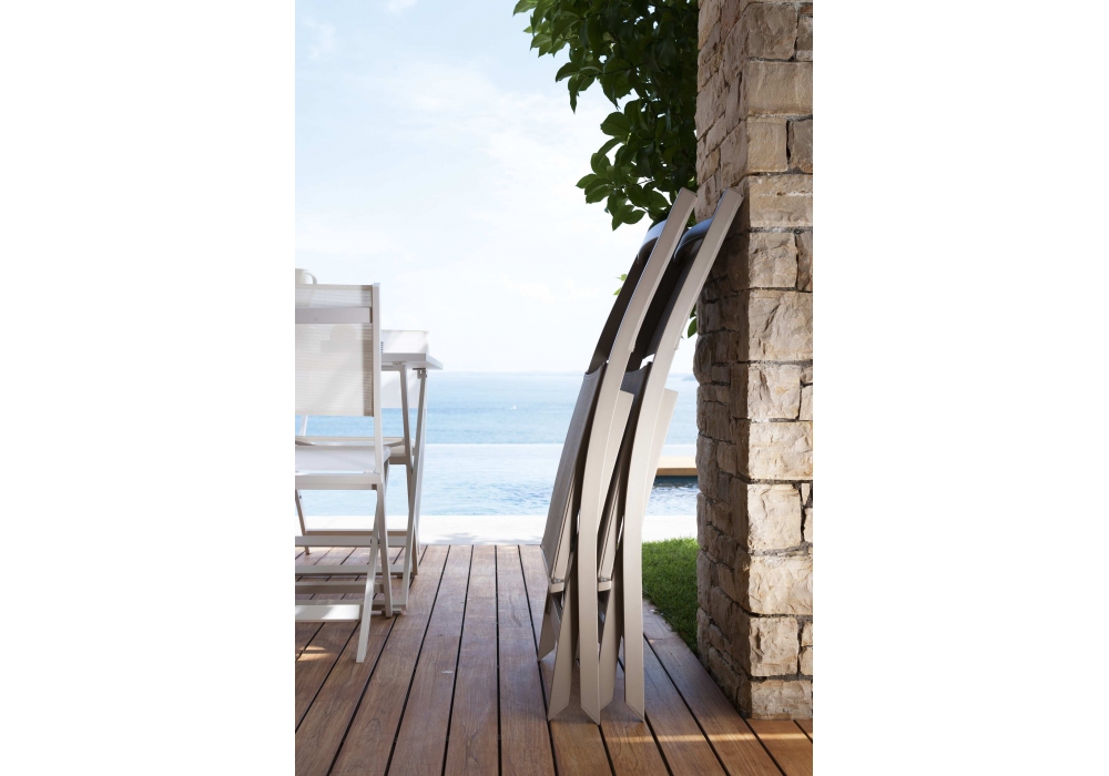 Queen conçue par Talenti est une chaise pliante en aluminium, revêtement en tissu. Disponible en différentes finitions.