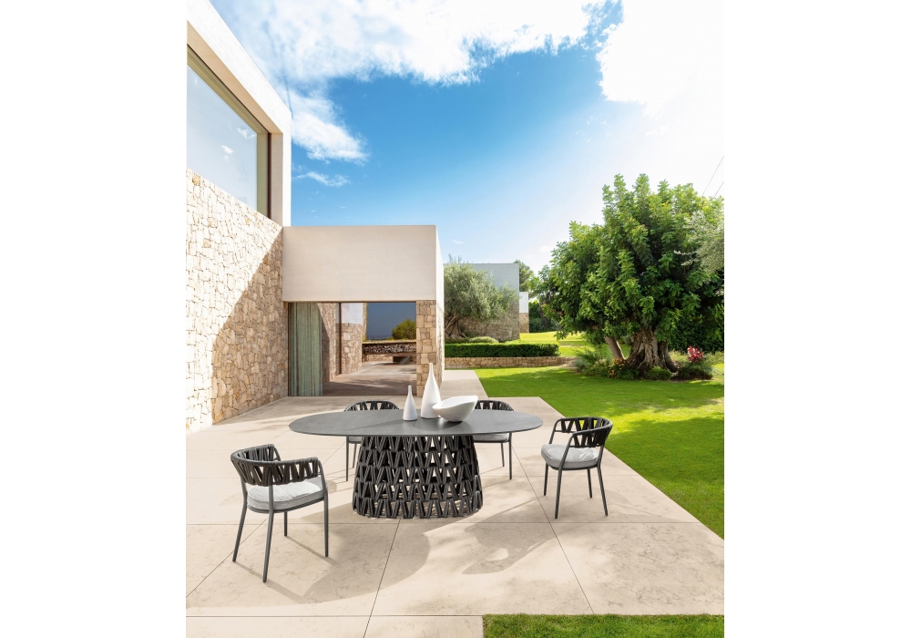 Swipe conçu par Ludovica & Roberto Palomba pour Talenti est un petit fauteuil avec structure en aluminium, assise rembourrée avec revêtement en tissu, dossier recouvert de cordes synthétiques rembourrées. Disponible en différentes finitions.