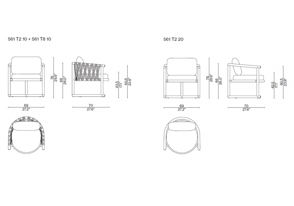 Trampoline 561 conçue par Patricia Urquiola pour Cassina est une lounge chaise avec structure en aluminium thermolaqué, coussins en mousse de polyuréthane avec un pourcentage de polyols d'origine biologique recouverts d'ouate douce de fibres PET et toile de polyester hydrofuge. Proposé en deux versions.