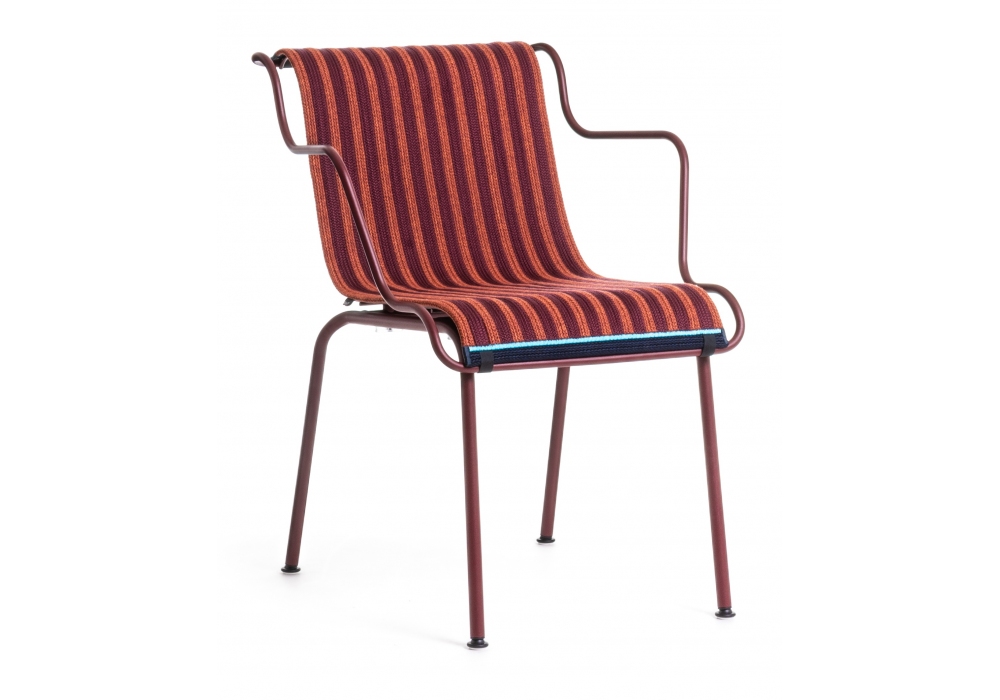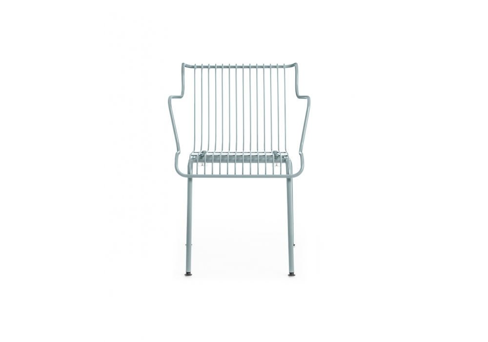 South conçue par Konstantin Grcic pour Magis est une chaise avec structure en tube d'acier traité par cataphorèse et tige peinte en polyester en différentes finitions. Pieds réglables. Possibilité d'ajouter des nattes tissées.