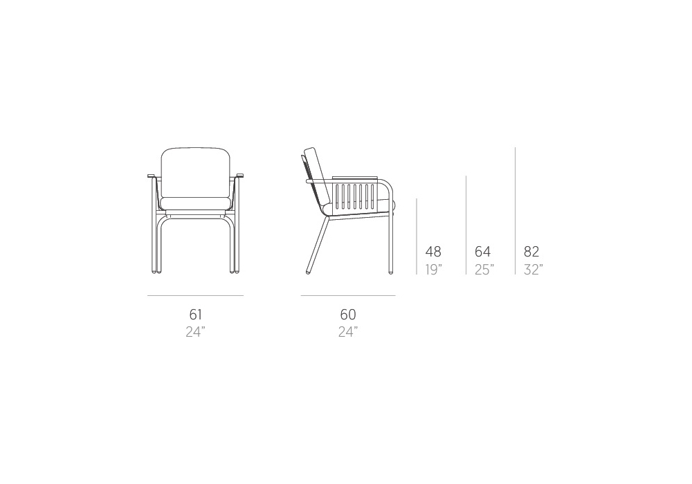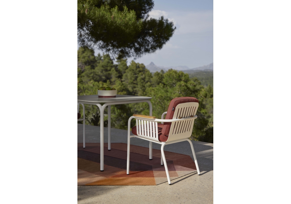 Capa Chaise conçue par Søren Rose pour Gandia Blasco est fabriquée en aluminium thermolaqué. Accoudoirs en porcelaine (en option) ou en bois d'iroko . Assise et dossier en mousse de polyuréthane et fibre de polyester avec tissu déperlant. Disponible en différentes finitions.