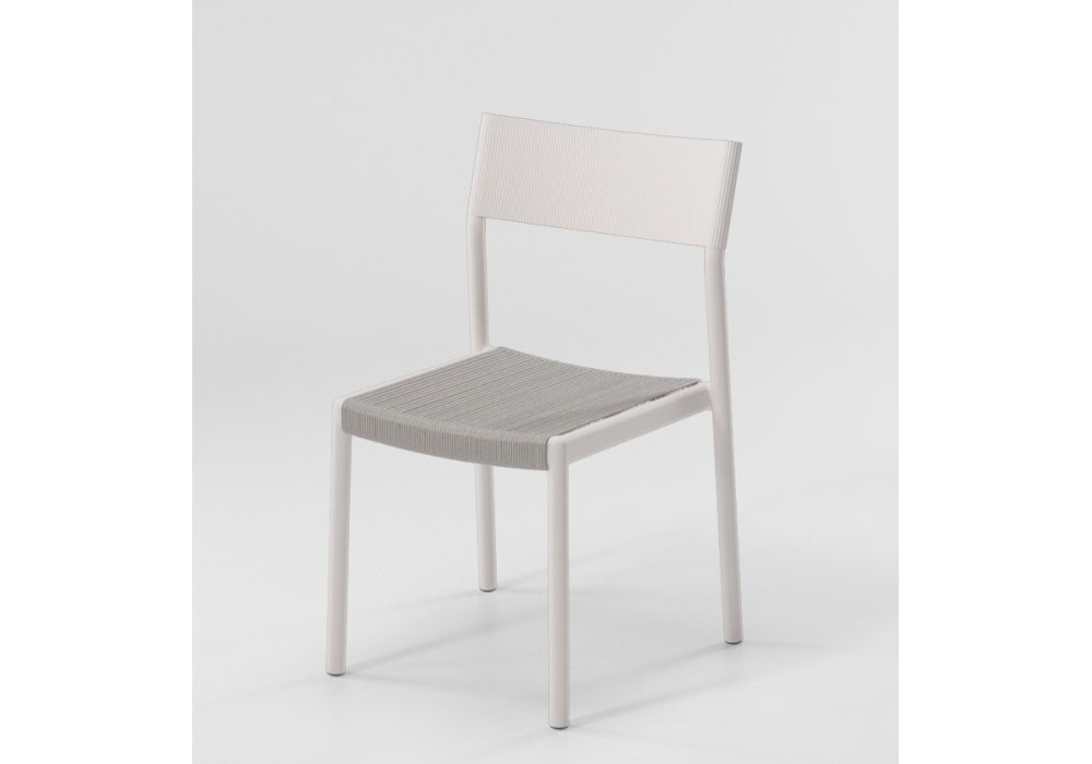 Passage Outdoor conçue par Ronan Bouroullec pour Kettal est une chaise d'extérieur dotée d'une structure en métal, finition brillante ou texturée. L'assise est en aluminium, en papyrus ou en corde de la même couleur que la structure.