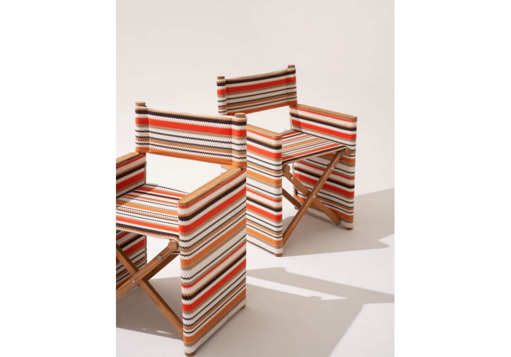 Orson conçue par Gordon Guillaumier pour Roda est une chaise d'extérieur qui fait partie d'une collection en collaboration avec Missoni. Elle réinterprète la chaise de metteur en scène classique, mais de manière contemporaine. Elle est recouverte de fil acrylique avec différents procédés jacquard. Disponible en plusieurs finitions.