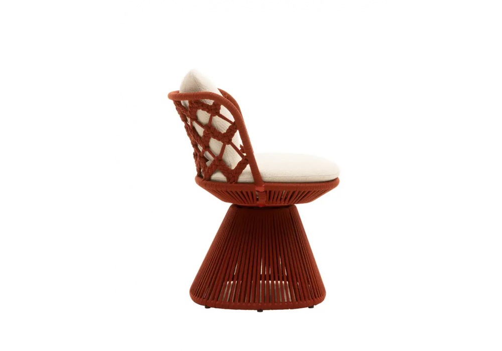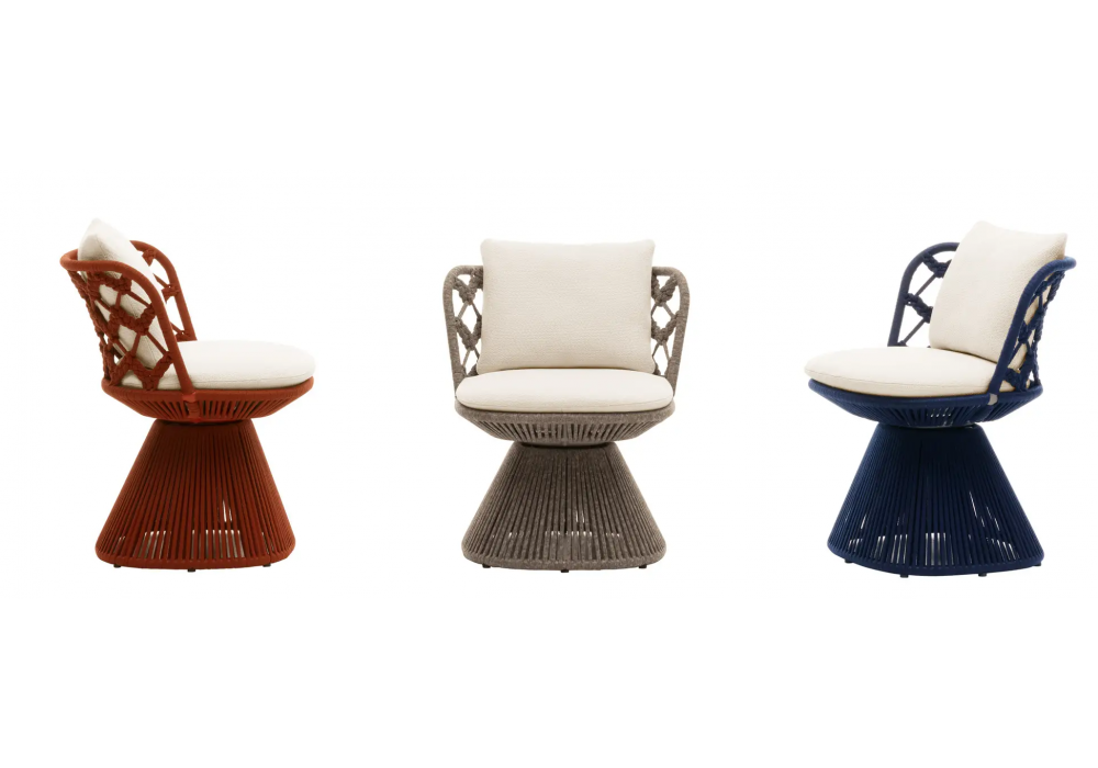 Flair O' conçue par Monica Armani pour B&B Italia Outdoor est une chaise avec structure en aluminium peint et tissage en polypropylène disponible en plusieurs finitions. Elle est disponible avec des coussins d'assise et de dossier dans différents tissus.