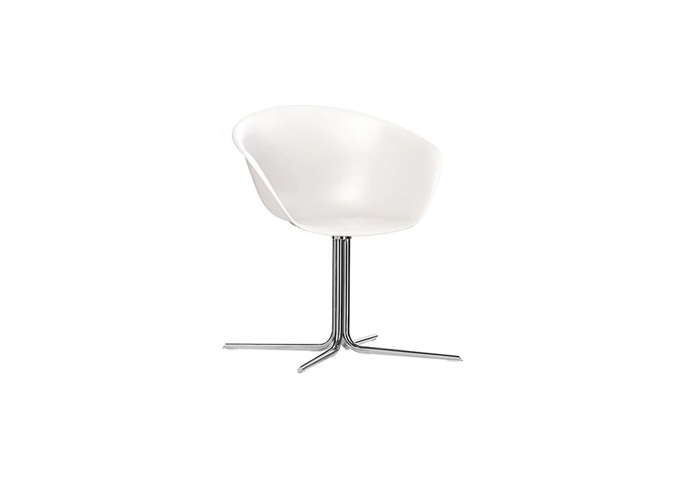 Duna 02 est une collection de sièges conçue par Lievore Altherr Molina pour Arper. Fauteuil sur base centrale pivotante à quatre branches en acier chromé. La coque est en polypropylène disponible en six couleurs, avec coussins rembourré, avec revêtement frontal ou entièrement recouverte de cuir, similicuir, tissu ou tissu fourni par la client.