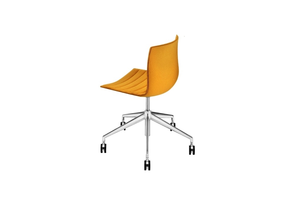 Catifa 46 conçue par Lievore Altherr Molina pour Arper est une assise sur piètement pivotant à cinq branches, avec structure en aluminium, montée sur des roulettes auto-freinantes et dotée de mécanisme à gaz pour le réglage de la hauteur. Existe avec coque en polypropylène monocolore ou polypropylène bicolore (ColorBi®) ; coque avec revêtement en cuir sellier, cuir deuxième qualité ; coque entièrement rembourrée avec revêtement en cuir, similicuir, tissu ou tissu fourni par le client ; coque en polypropylène monocolore avec rembourrage frontal ou appliqué uniquement sur la surface de l'assise ; coque en bois avec trois finitions (chêne naturel, chêne blanchi, wengé), également avec rembourrage frontal ; coque en polypropylène blanc (PO101) avec revêtement déhoussable non lavable en cuir, similicuir, tissu ou tissu fourni par le client déjà mis en place sur l'assise. Disponible également en version avec accoudoirs en acier et polypropylène ou avec revêtement.