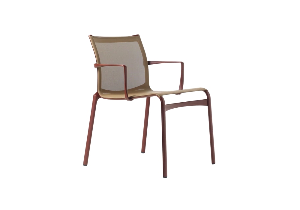 459 Frame 52 conçue par Alberto Meda pour Alias est une chaise empilable avec accoudoirs en structure d'aluminium extrudé. Assise et dossier en filet ignifuge disponibles en différentes finitions. Le tissu est monté sur une maille de la même couleur que la structure ou le tissu.