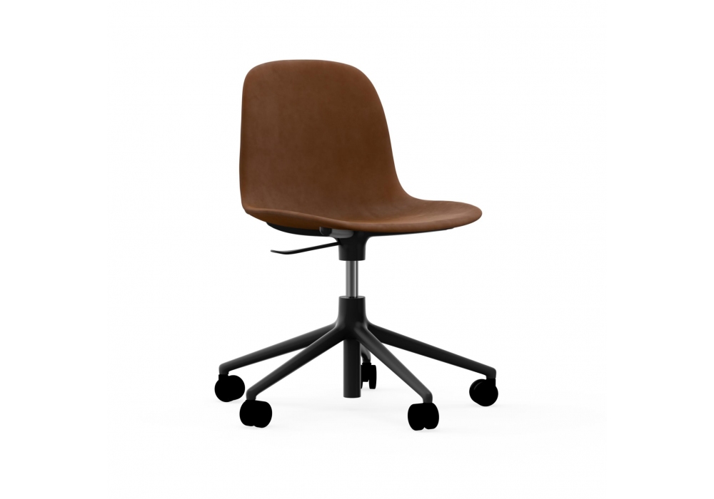Form conçue par Simon Legald pour Normann Copenhagen est une chaise avec base pivotante en aluminium et assise en mousse PU, revêtement en cuir ou tissu. Form est disponible en différentes versions et finitions.