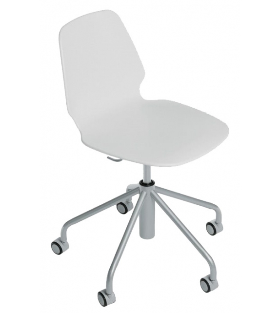 Selinunte Sledge 531 conçu par Alfredo Häberli pour Alias est une chaise luge, coque en plastique blanc structure, et piètement en acier peint disponible en différentes finitions.