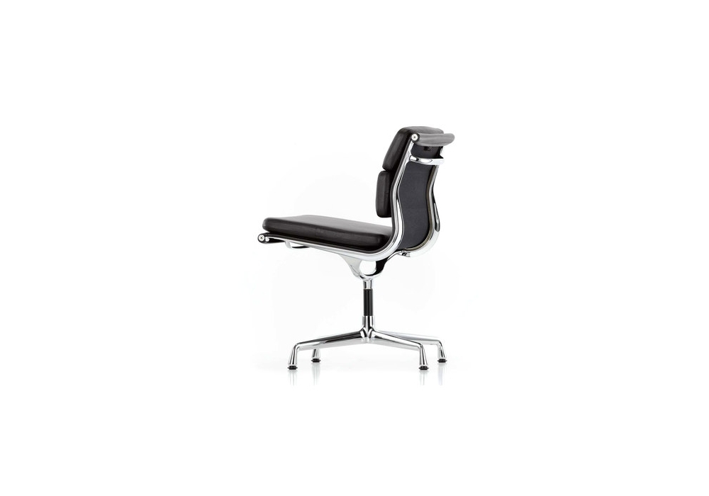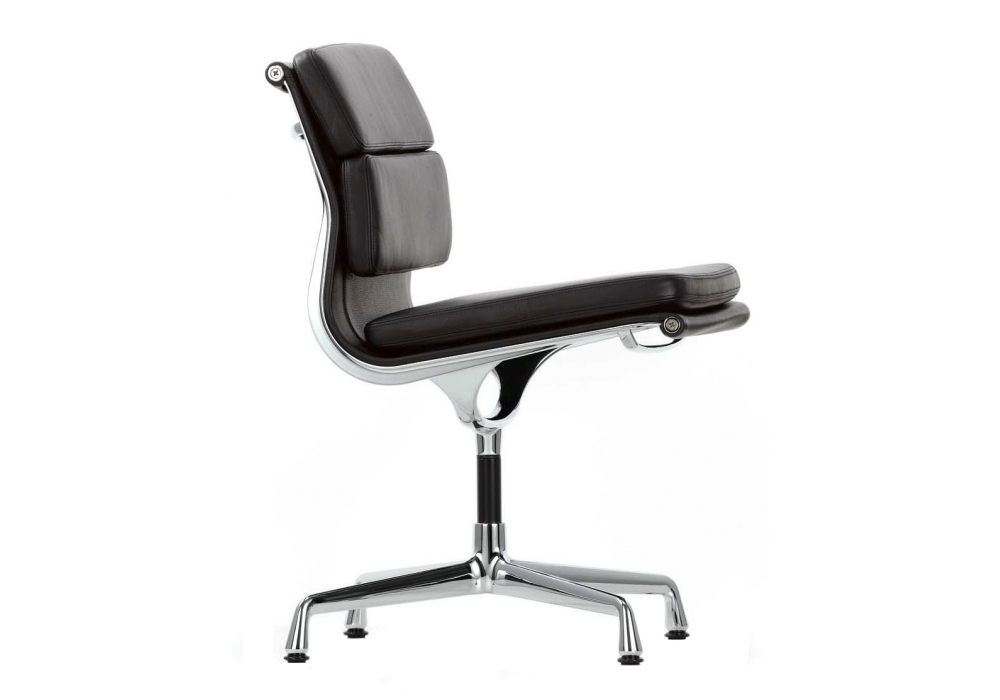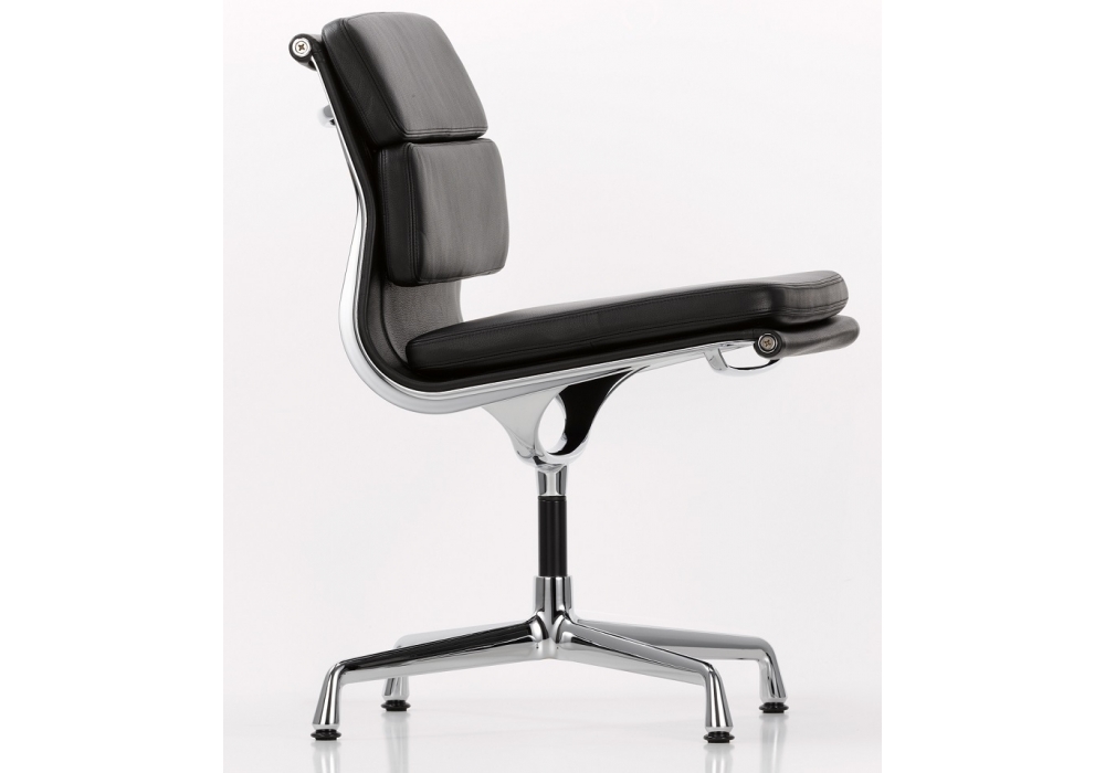 La conception du Soft Pad Group remonte à l'année 1969. La structure et la forme du siège Soft Pad chair sont similaires à celles de l’Aluminium Chair. Les coussins de rembourrage en cuir assurent un confort moelleux et constituent un contraste intéressant avec la sobriété des fins profilés d’aluminium.