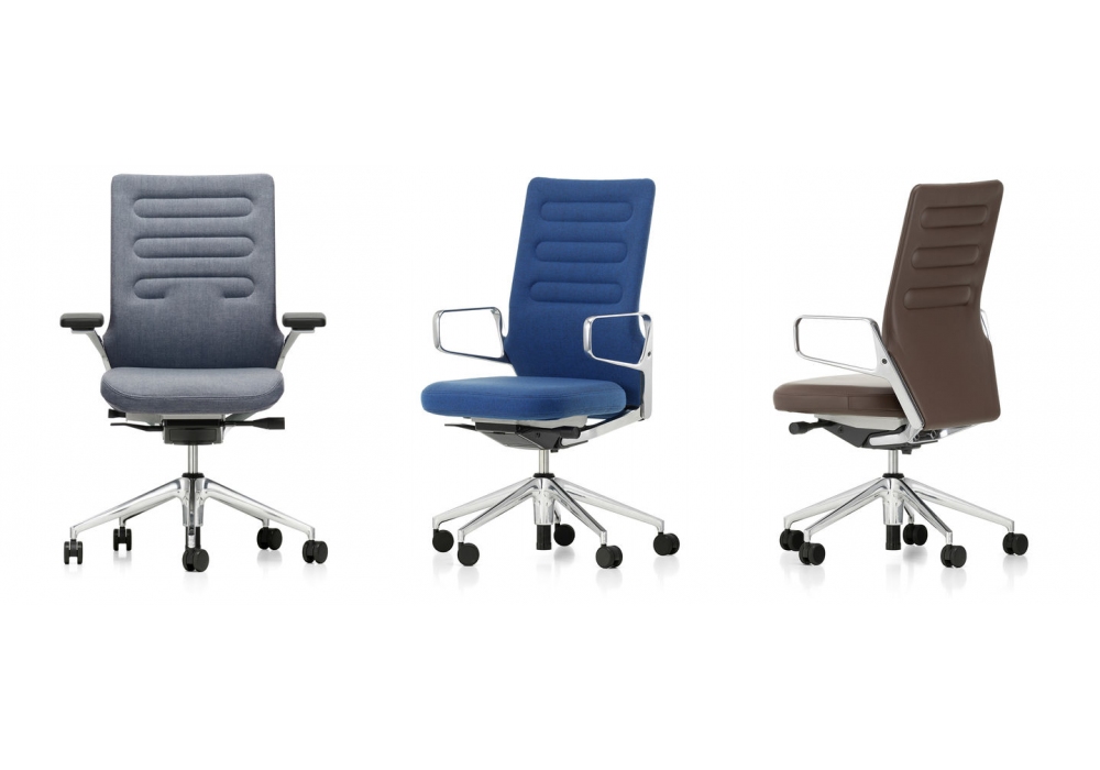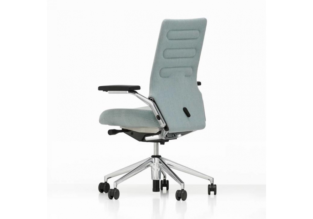 AC 5 Work conçu par Antonio Citterio pour Vitra est une chaise de bureau pivotante avec support lombaire réglable. La chaise de bureau a un mécanisme FlowMotion avec inclinaison vers l'avant synchronisée et réglage de la profondeur du siège. L'assise et le dossier sont en tissu ou en cuir et la base cinq étoiles en aluminium poli ou en matière synthétique basik dark. Les mesures et les accoudoirs FreeFloat sont conformes à la norme EN 1335-1.