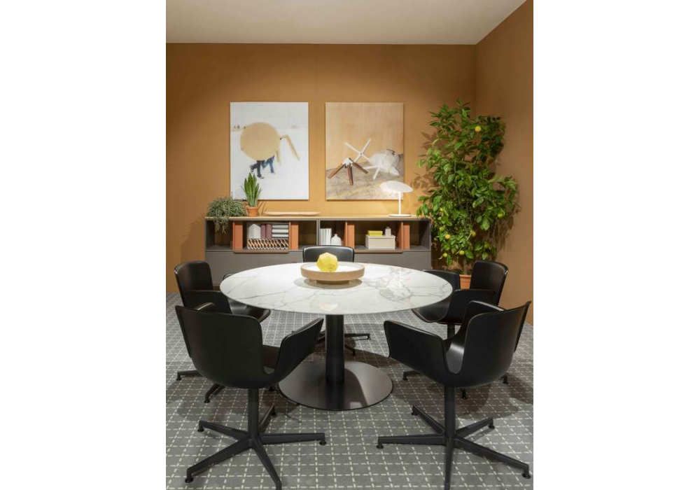 Juli Plastic conçu par Werner Aisslinger pour Cappellini est un petit fauteuil pivotant à hauteur variable réalisé avec une base à 5 étoiles avec des pieds ou des roues et des accoudoirs en plastique. Structure et coque disponibles en différentes finitions.