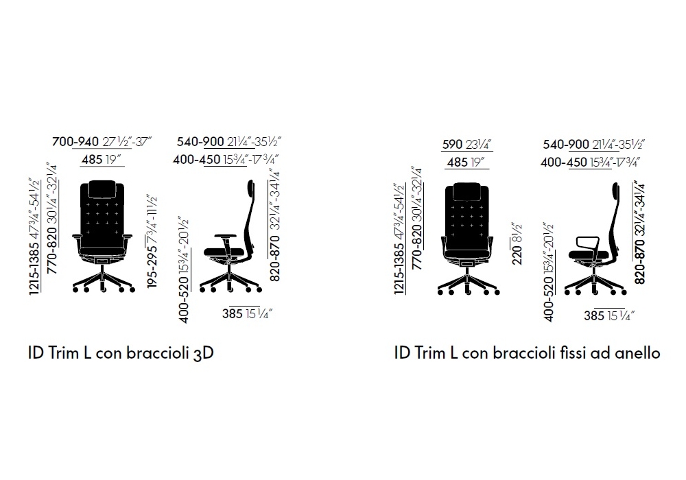 ID Trim L conçue par Antonio Citterio pour Vitra est une chaise de bureau pivotante avec piètement à cinq branches avec roues et appui-tête en cuir. Disponible avec la tapisserie d'ameublement de tissu dans différentes finitions. Les accoudoirs sont dans la même finition que la structure ou circulaire en aluminium poli. Avec ou sans support lombaire réglable.
