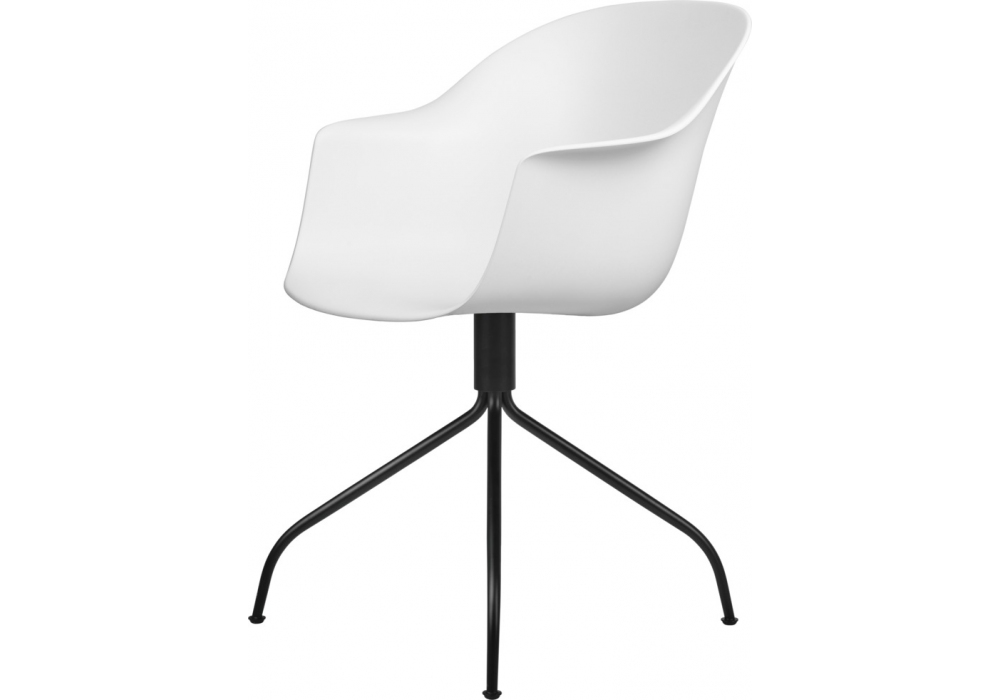 Bat conçue par GamFratesi pour Gubi est une chaise de réunion composée d'une coque en polypropylène et d'une base pivotante en métal.