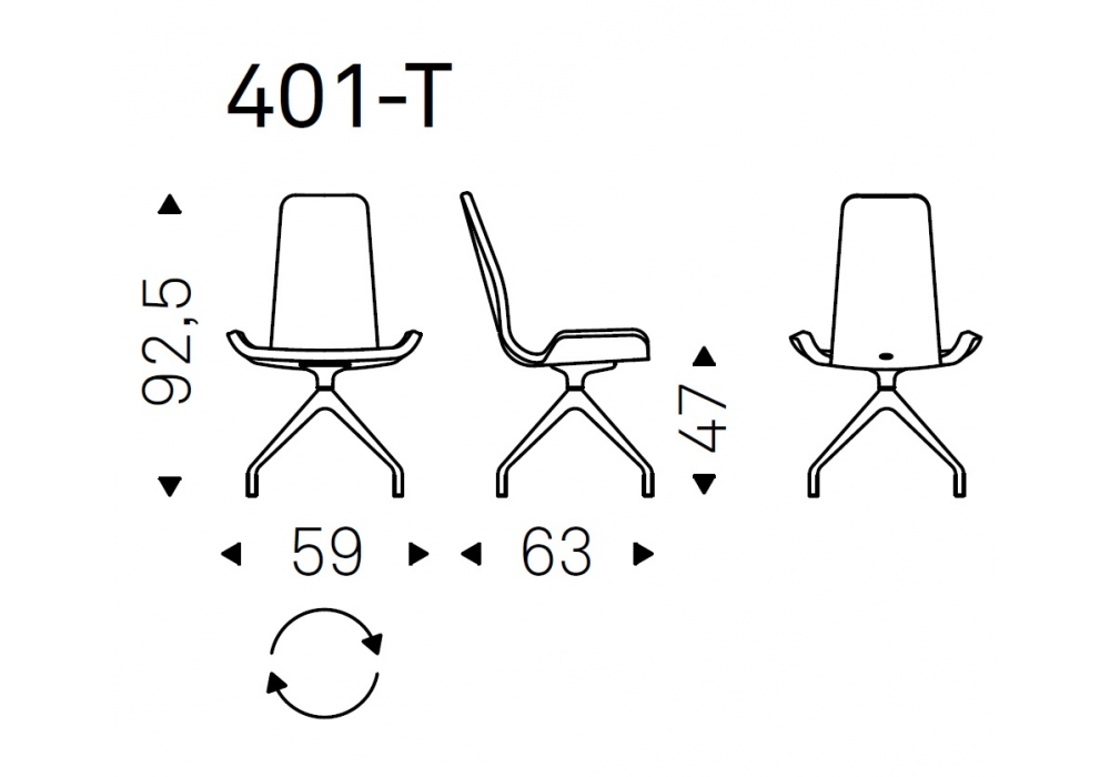 Flamingo 401-T conçue par Paolo cattelan pour Cattelan Italia est une chaise pivotante avec base avec 4 rayons en nylon dans les couleurs graphite, blanc ou noir. Revêtement en tissu, synthetic nubuck, micro nubuck, simili cuir ou cuir.