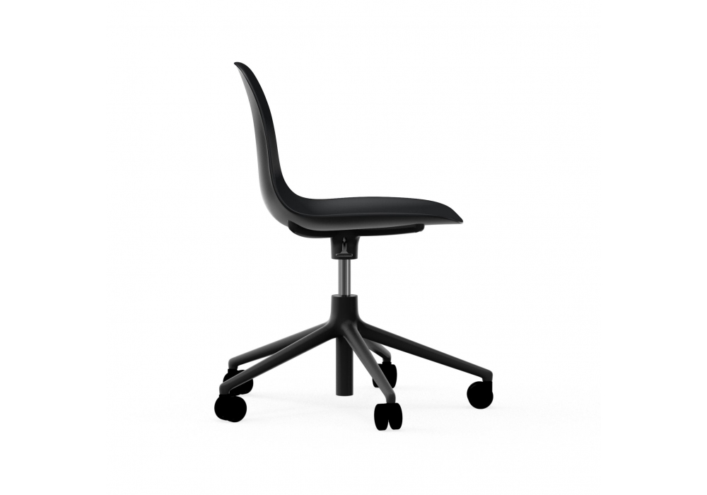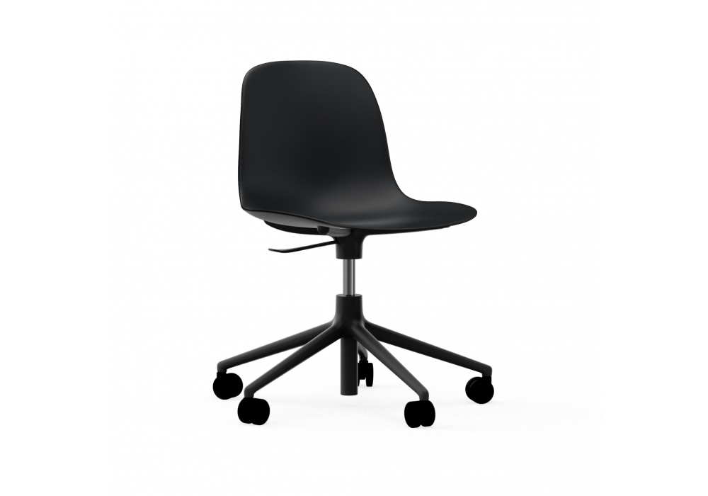 Form, conçue par Simon Legald pour Normann Copenhagen est une chaise pivotante, avec base en aluminium et assise en matière plastique de différentes couleurs. Form est disponible en différents modèles et couleurs avec une base pivotante.