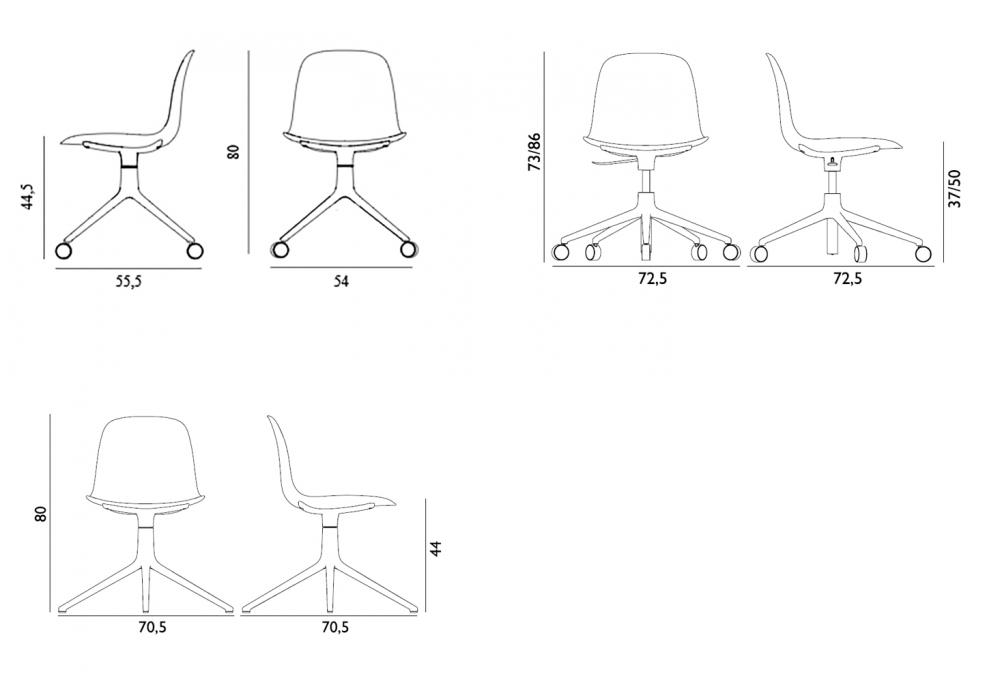 | Dimensions | 70,5 x 70,5 x H 80 cm; 54 x 55,5 x H 80 cm; 72,5 x 72,5 x H 73-86 cm |