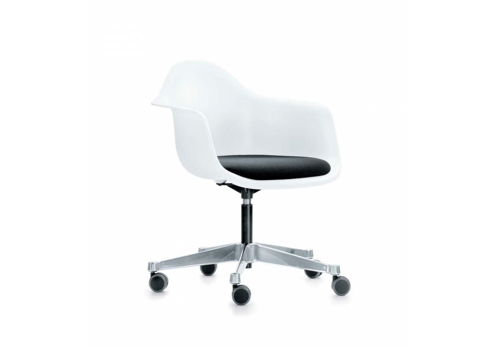 Vitra, Chaise Pivotant Eames Plastic Armchair PACC: L’Eames Plastic Chair est la version actualisée du légendaire Fiberglass Chair. A l‘occasion du concours „Low Cost Furniture Design“ du Museum of Modern Art de New York, Charles et Ray Eames ont présenté les créations du Plastic Chair Group. Ces premiers sièges synthétiques de fabrication industrielle arrivèrent sur le marché en 1950.