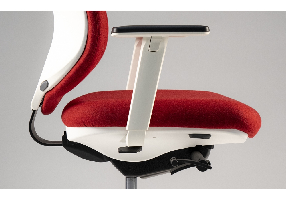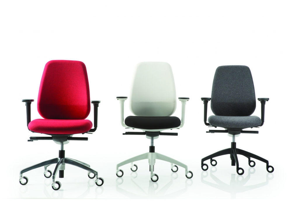 Pratica conçue par Luxy est une chaise avec dossier et assise avec rembourrage en forme de grand confort en mousse ignifuge, base en nylon renforcé de fibre de verre noir ou blanc ou en aluminium moulé sous pression brillant. Accoudoirs 2D ou 4D en T blanc ou noir avec coussin noir en polyuréthane souple. Revêtement en tissu ou cuir.