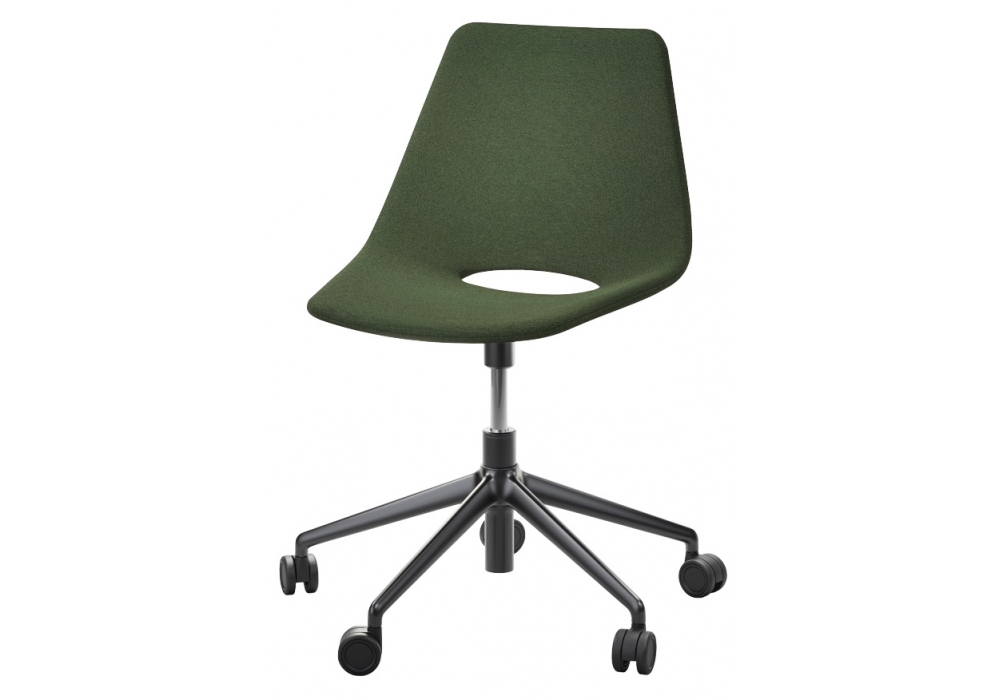 S 661 PVDR conçue par Günter Eberle pour Thonet est une chaise entièrement revêtue en tissu, cuir ou peau. Structure en aluminium, poli ou thermolaqué, base pivotante à 5 branches avec roues noires. Hauteur réglable en continu.