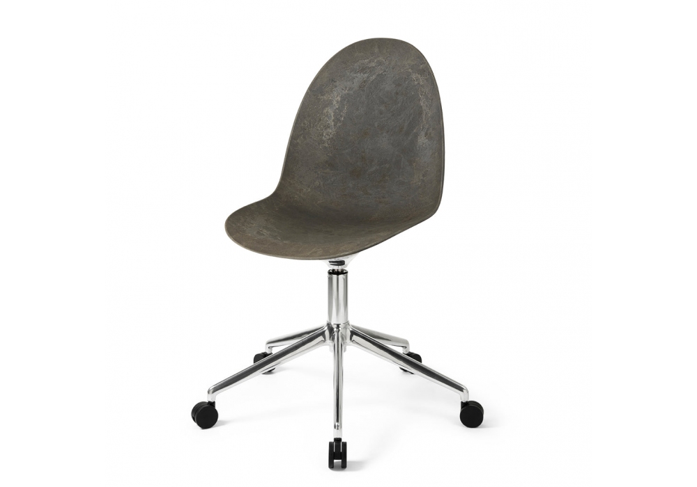 Eternity W/Castors conçue par Space Copenhagen pour Mater est une chaise pivotante à roulettes, base en aluminium peint noir ou brillant, assise en Matek®.