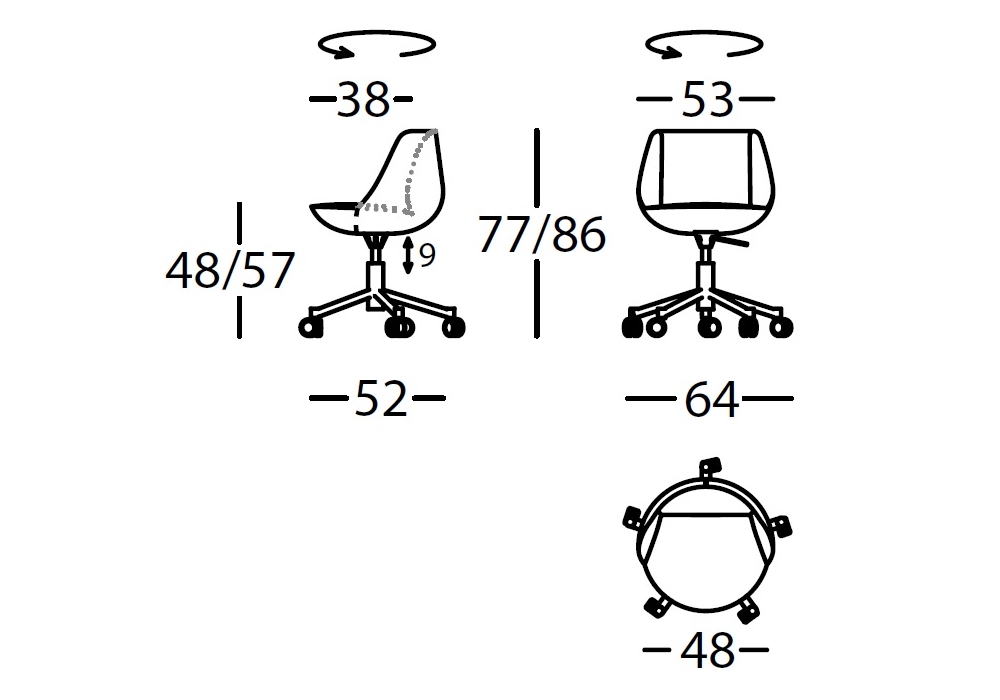 | Dimensions | • 64 x 52 x H 77/86 cm |