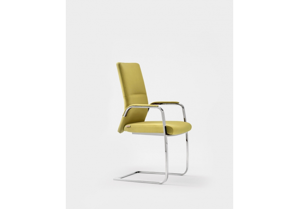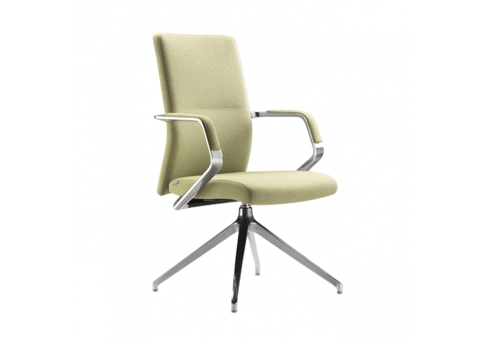 Celine conçue par Milani est une chaise visiteur réalisée avec une assise et un dossier en mousse ignifuge, une base fixe ou pivotante en aluminium et un revêtement en tissu ou en cuir.
