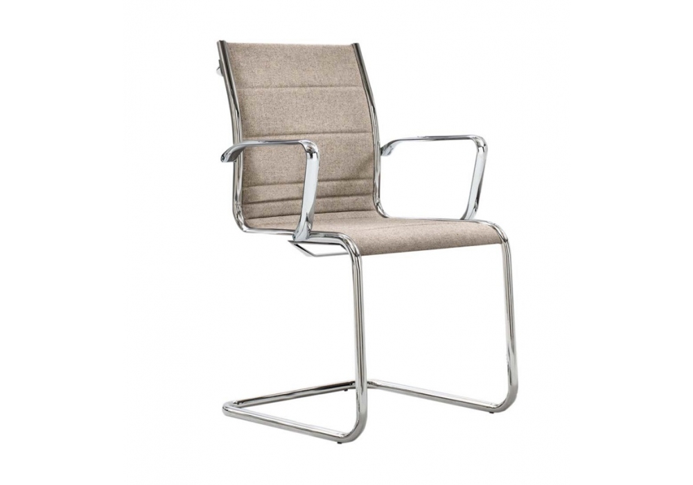 Sky Ten conçue par R&D Milani est une chaise visiteur réalisée avec assise et dossier en résine expansée ignifuge, structure en métal chromé sans vis latérales. Piètement luge en métal.