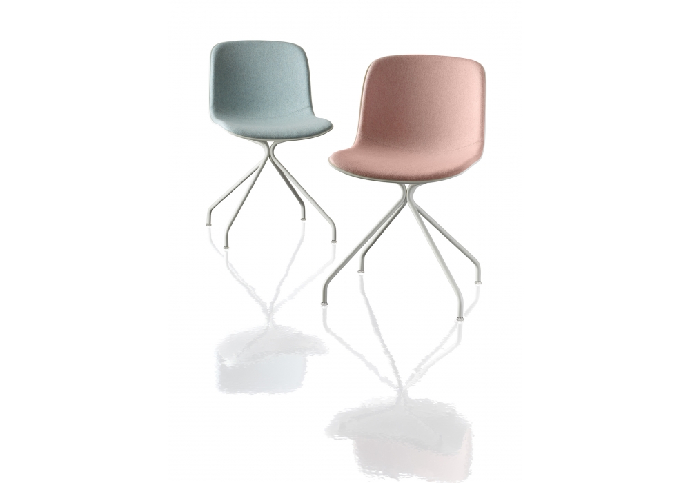 Troy 4 Star conçue par Marcel Wanders pour Magis est une chaise à 4 branches, structure en tube d'acier chromé ou peint. Assise en polypropylène ou contreplaqué de hêtre. Siège avec rembourrage avant en mousse de polyuréthane ignifuge en tissu ou cuir.