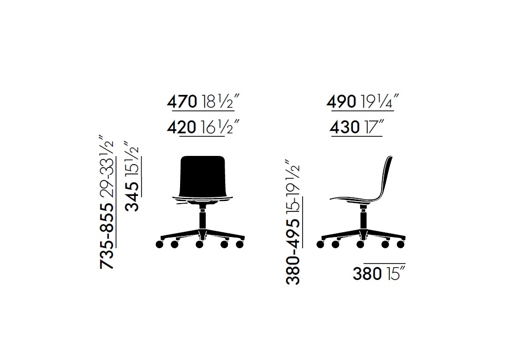 HAL Ply Studio: Coque d‘assise : contreplaqué. Piètement à cinq branches : aluminium finition époxy basic dark. Mécanisme pivotant avec suspension amortisseuse de l‘assise, hauteur réglable.