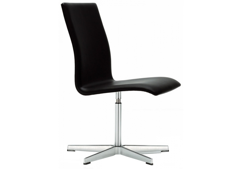 Oxford conçue par Arne Jacobsen pour Fritz Hansen est une chaise à dossier bas recouverte de tissu ou de cuir. Base à 5 branches en aluminium satiné, chromé ou thermolaqué. Disponible en version fixe ou réglable en hauteur.
