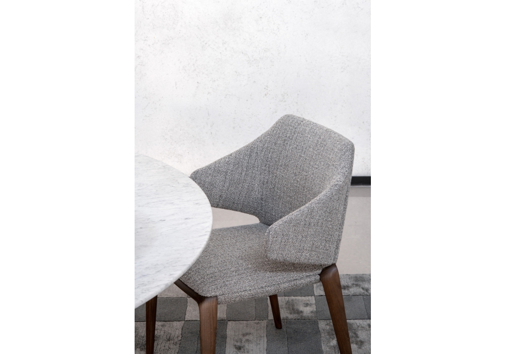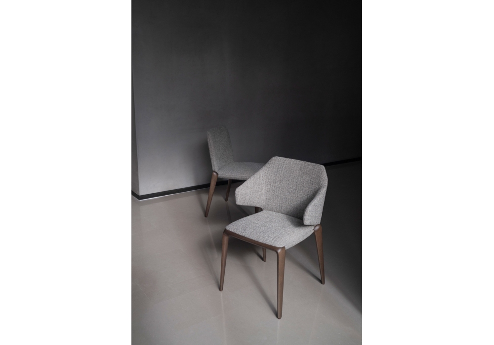 Hiru conçue par Mario Ferrarini pour Potocco est une chaise réalisée en frêne massif en différentes finitions. L'assise et le dossier sont rembourrés et recouverts de cuir, de tissu ou de similicuir. Disponible en deux modèles.