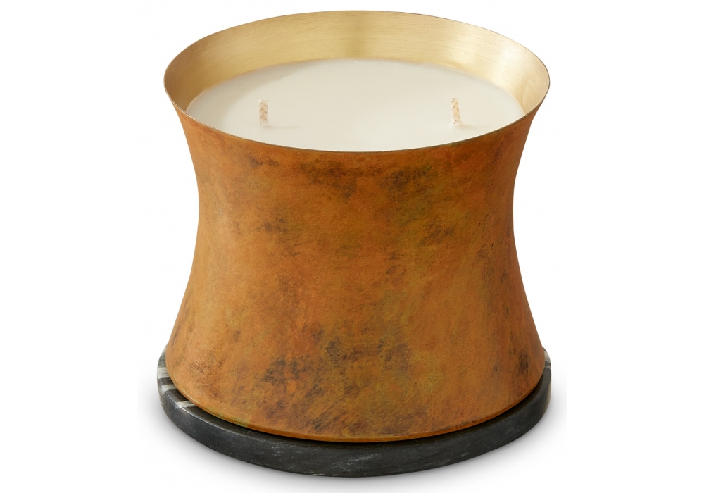 Eclectic Underground conçue par Tom Dixon est une bougie parfumée enfermée dans un récipient en laiton filé à la main avec un couvercle en marbre Banswara robuste. Disponible en deux tailles.