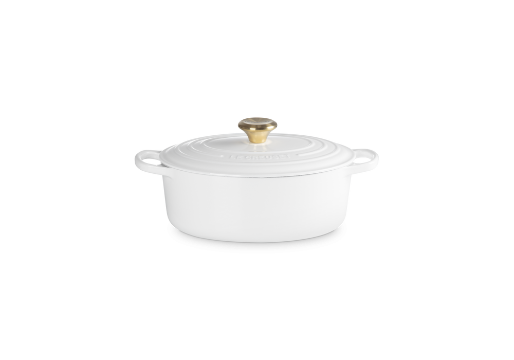 Cocotte Ovale Evolution 27 conçue par Le Creuset est une cocotte ovale en fonte disponible en différentes couleurs. Finition intérieure blanche à l'exception de la casserole noire qui a l'intérieur noir.