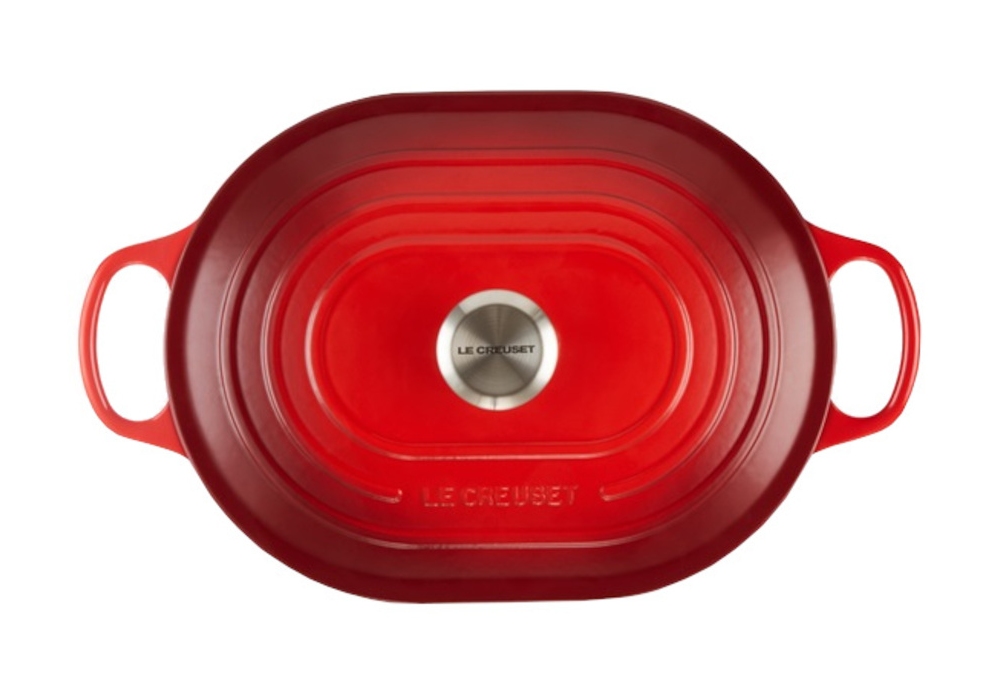 Oblong Evolution 31 conçue par Le Creuset est une cocotte en fonte disponible en différentes couleurs. Finition intérieure blanche à l'exception de la casserole noire qui a l'intérieur noir.