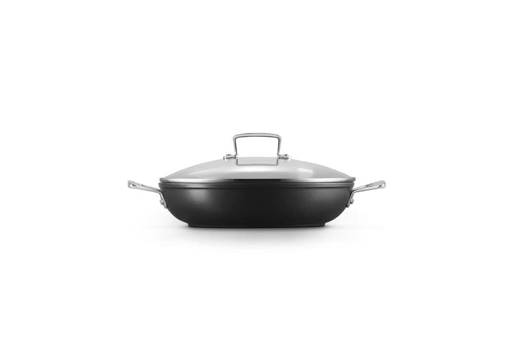 Tegame Basso con Manici e Coperchio 30 conçue par Le Creuset est une casserole en aluminium antiadhésive avec poignées et couvercle.