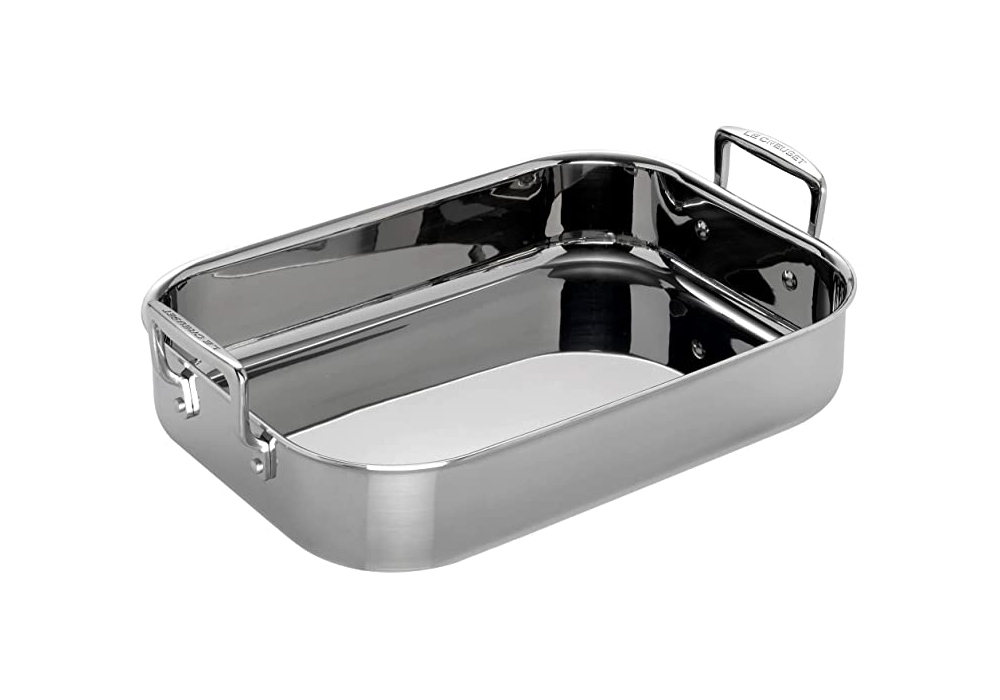 Arrostiera Rettangolare conçue par Le Creuset est une rôtissoire rectangulaire en acier inoxydable.