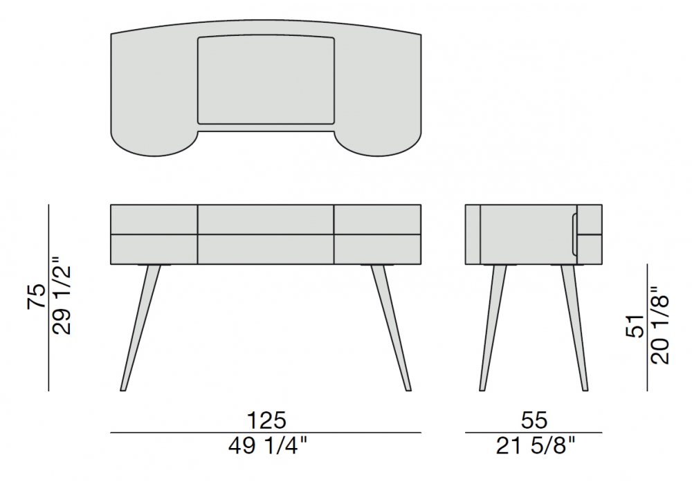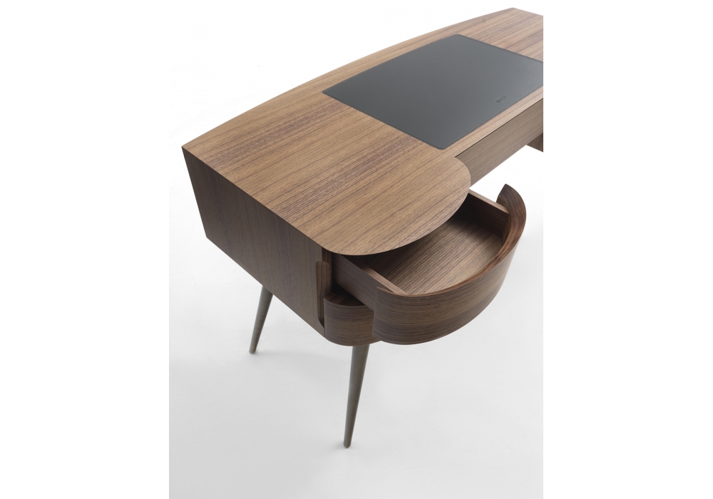 Micol conçue par G. Azzarello pour Porada est une coiffeuse en noyer canaletta disponible en trois finitions différentes, avec 5 tiroirs. Plateau avec joint en cuoietto. Jambes coniques en laiton bronzé brossé.