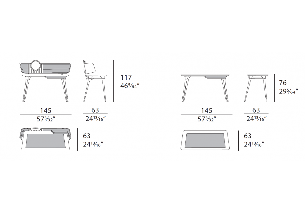 | Dimensions | 145 x 63 x H 117 cm; 145 x 63 x H 76 cm. |