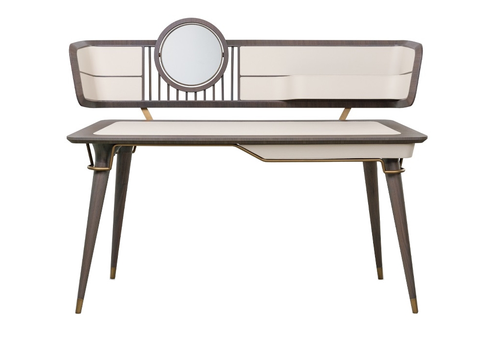 Melting Light conçue par Frank Jiang pour Turri est une coiffeuse avec structure en MDF, contreplaqué, noyer massif et panneaux de particules plaqués noyer. Dessus recouvert de cuir. Pièces métalliques en différentes finitions. Disponible dans la version avec ou sans miroir.