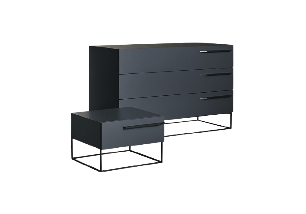 To Be conçu par Gino Carollo pour Bonaldo est une commode avec structure en bois laqué mat, en différentes couleurs. La base a un socle ou une structure en métal peint, en différentes finitions. Les poignées sont en métal dans la même finition que la base.