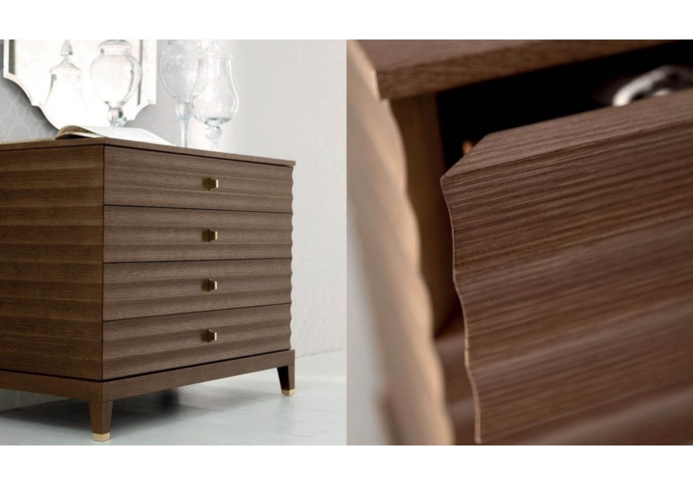 Elettra conçue par Castello Lagravinese Studio pour Opera Contemporary est une commode en bois avec poignées et pointes en métal. Disponible en différentes finitions et modèles.