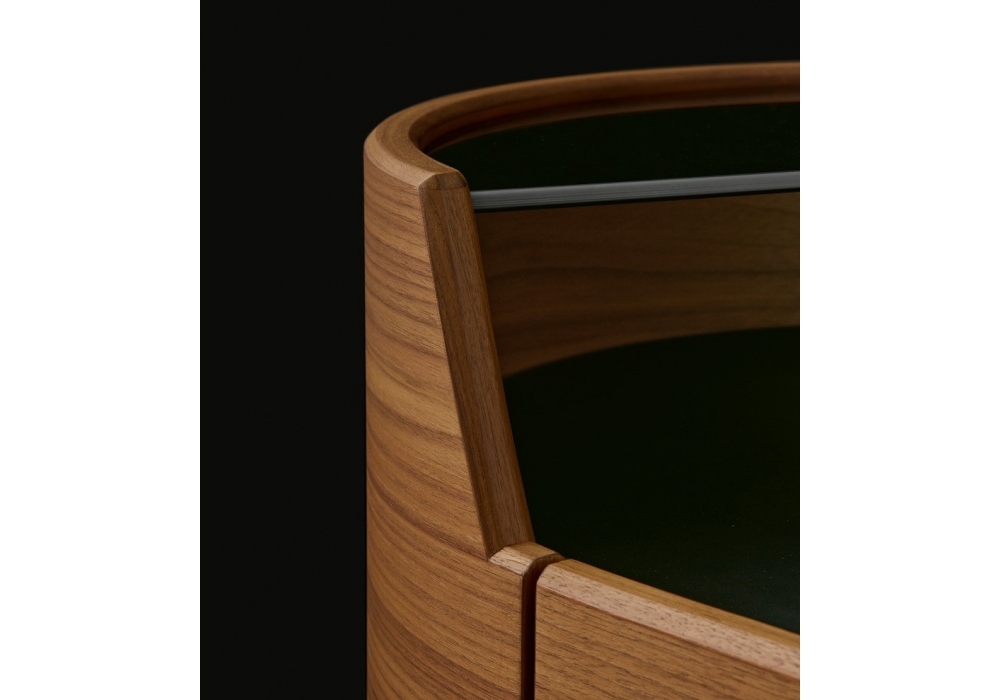 Kelly conçue par Emmanuel Gallina pour Poliform est une commode avec structure en bois plaqué et plateau disponible en laque mate ou brillante, recouvert de cuir ou de marbre.
