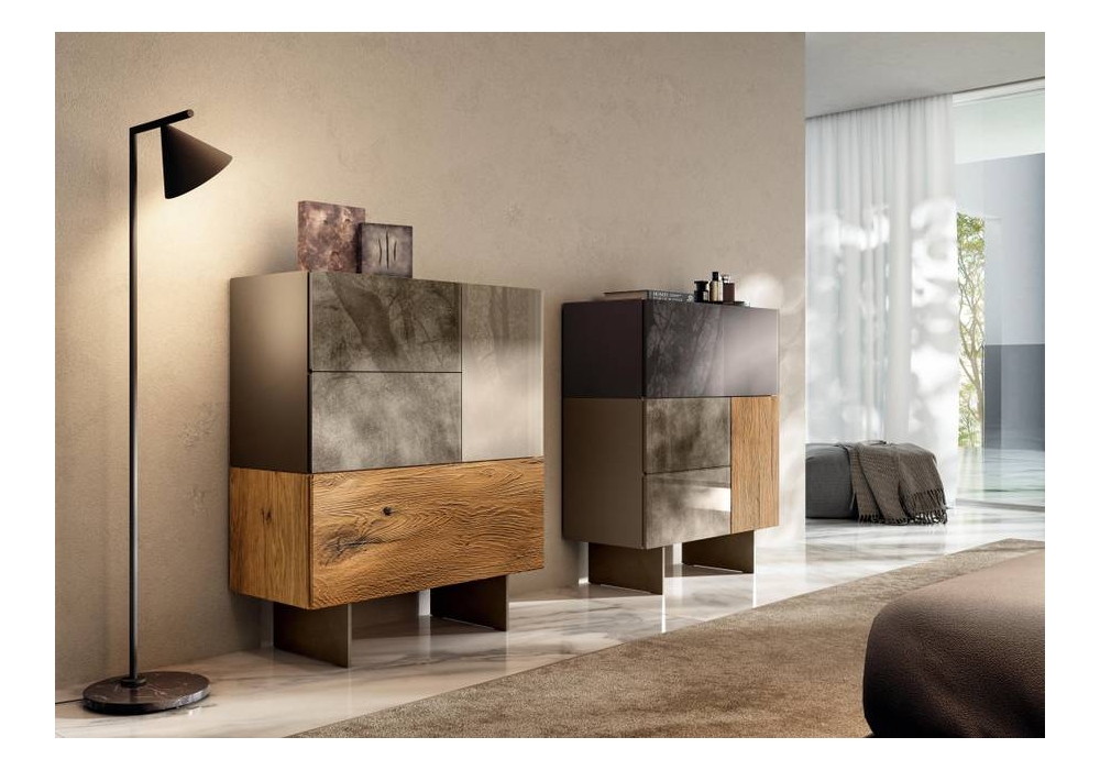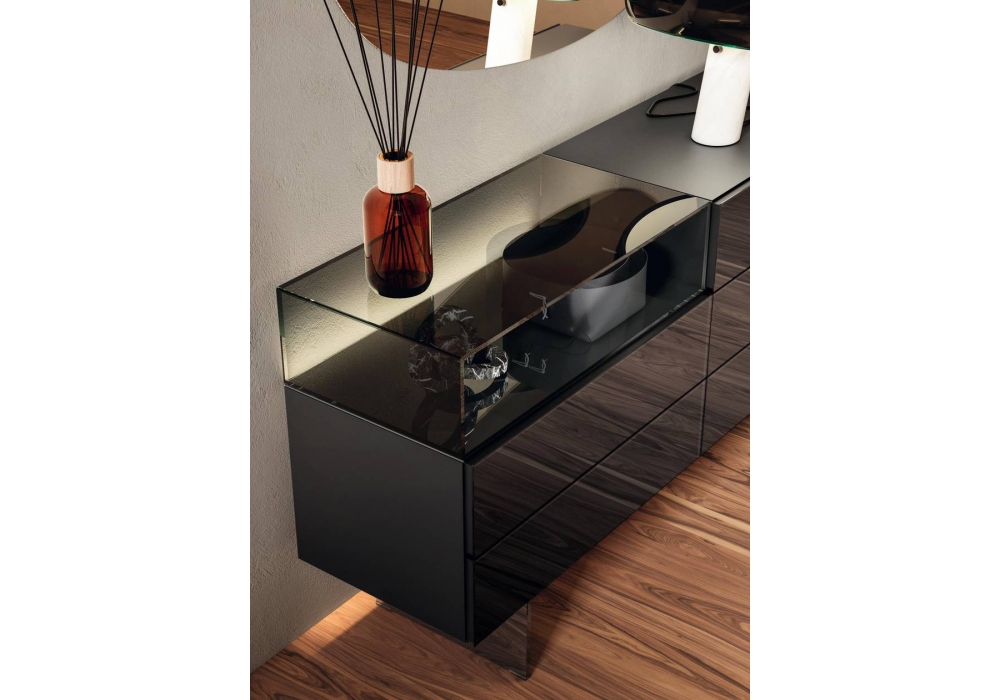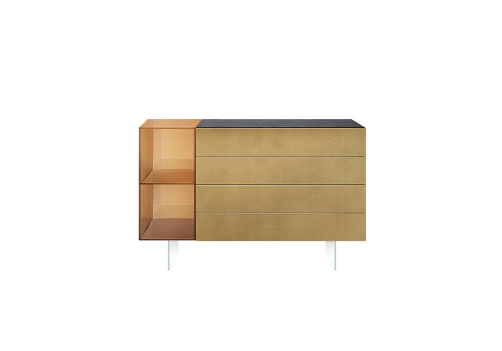 36e8 conçue par Daniele Lago est une commode disponible en différents modèles. Parmi les matériaux utilisés, on trouve: le bois Wildwood, le bois laqué, le verre et le verre xglass. Disponible avec des pieds en verre trempé, avec des pieds ou fixés au mur.