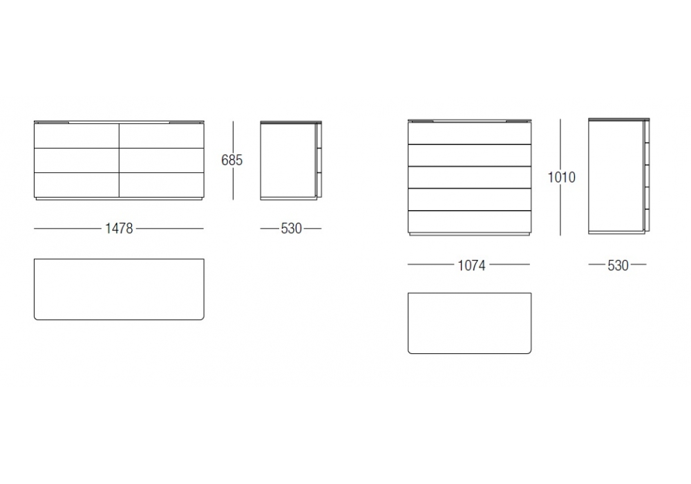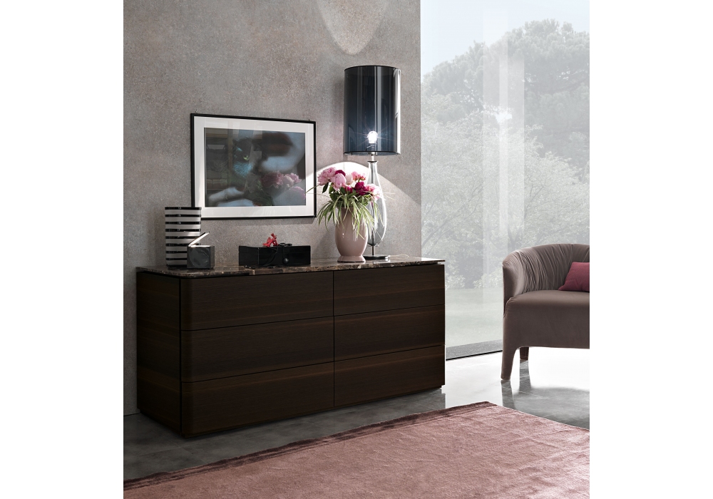 Lindo conçue par Francesco Lucchese pour MisuraEmme est une commode à 5 ou 6 tiroirs réalisée avec structure en bois et plateau en bois ou en marbre.