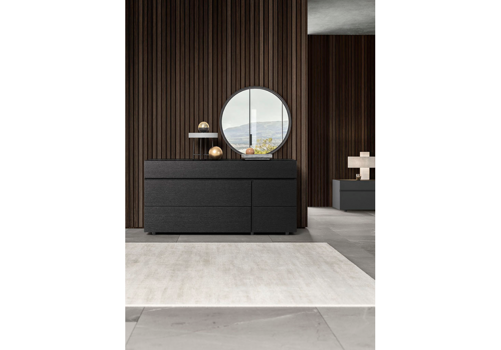 Twice conçu par R&D Alf DaFrè pour Alf Dafrè est une commode en bois plaqué ou laqué. Les tiroirs sont équipés d'une fermeture assistée.