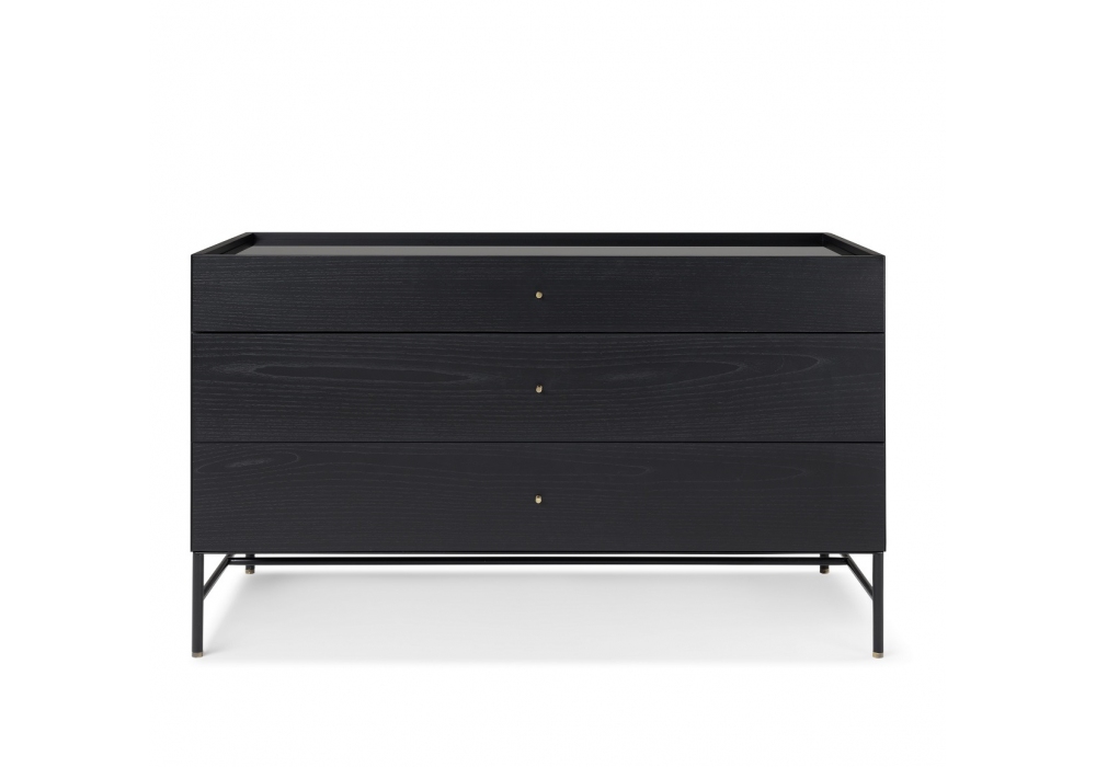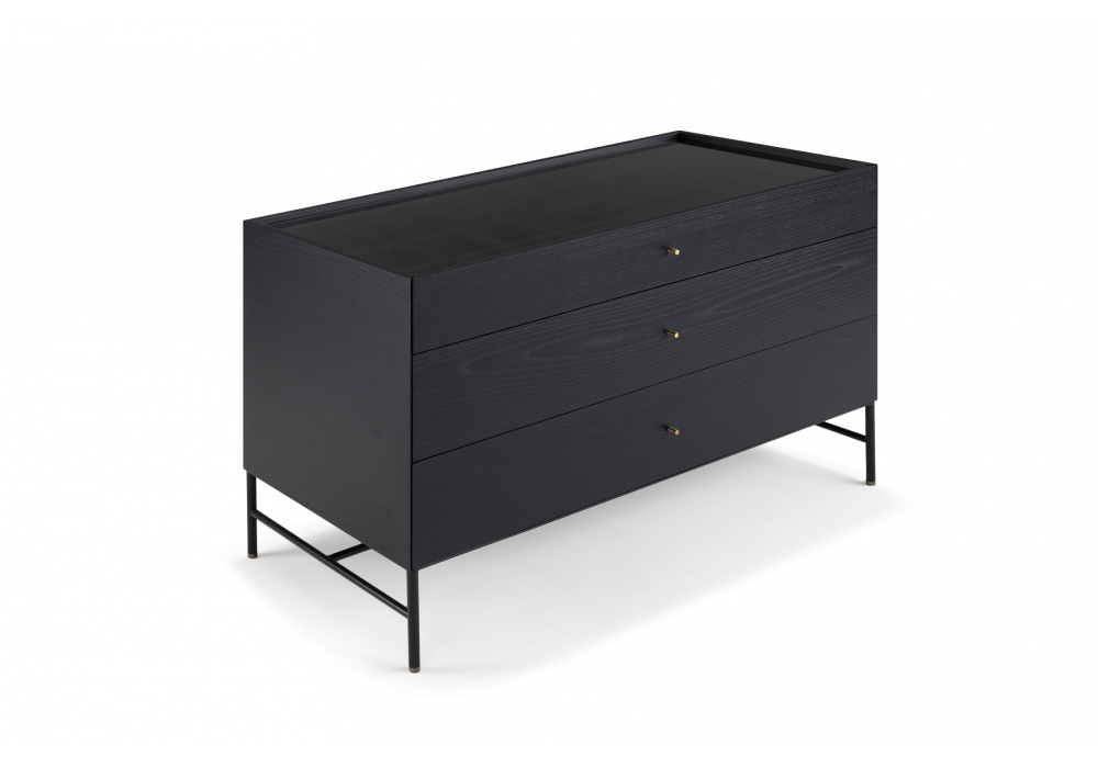 Cricket conçu par Dainelli Studio pour Conte Casa est une commode réalisée avec une structure en bois plaqué courbé, dans différentes essences ou bois laqué brillant ou mat. Plateau en bois, verre ou marbre et pieds en métal peint avec détails. Tiroirs intérieurs en bois plaqué, effet cuir. Disponible en différentes finitions.