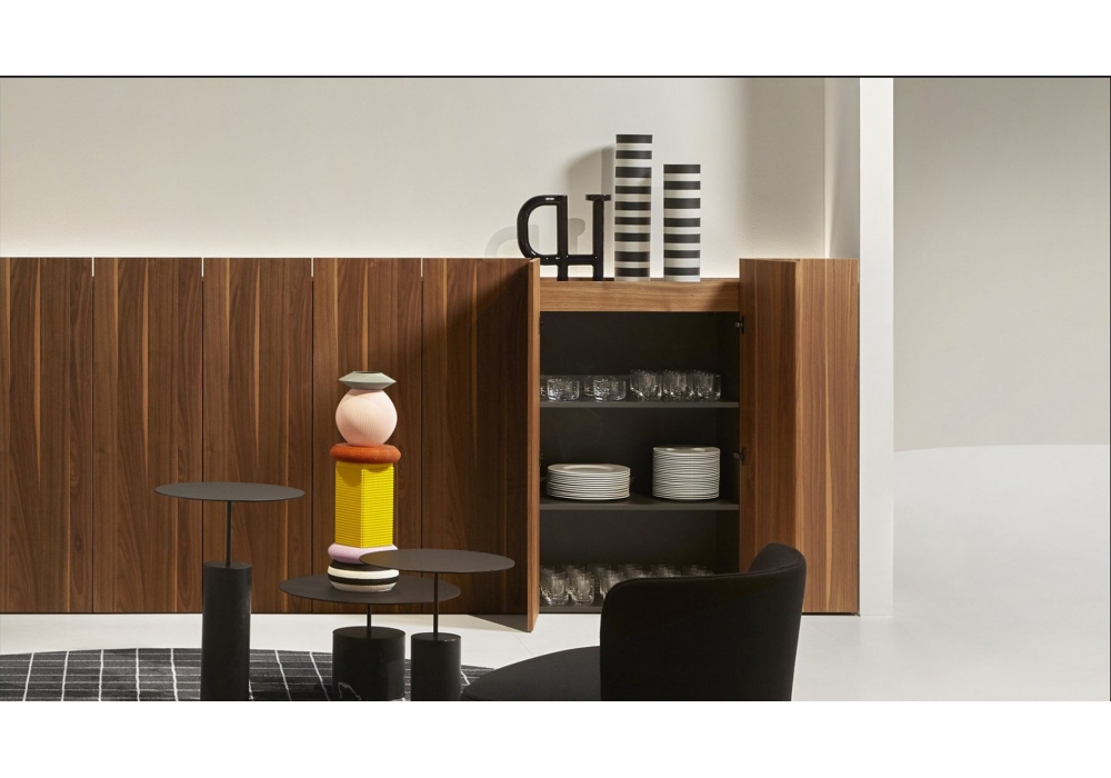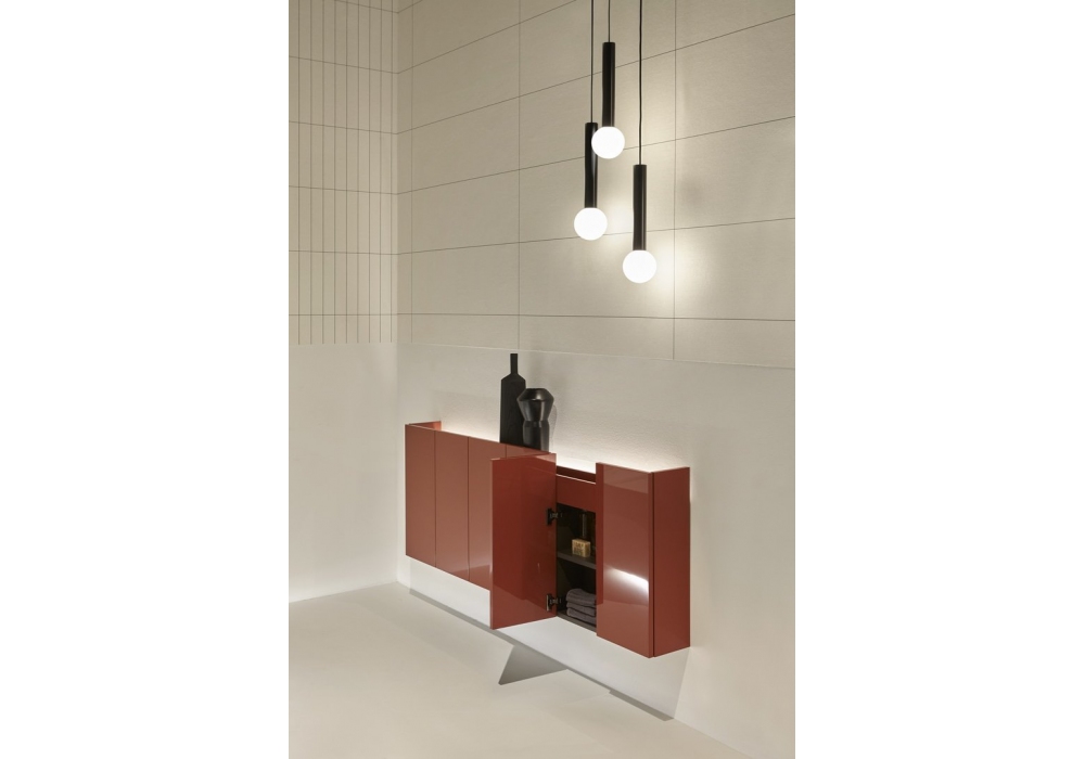 Anima Liquida conçu par Giorgio Rava pour Antonio Lupi est un système de panneaux et de rangements modulaires alliant élégance et fonctionnalité. Ses surfaces en bois ou laquées, entrecoupées de fines fentes verticales, créent une façade continue et raffinée dissimulant des plans de travail et des étagères éclairés par LED. Disponible en version à poser ou murale, dans différentes dimensions et finitions, Anima Liquida s'intègre parfaitement aux salles de bains, salons et autres pièces de la maison, créant un dialogue harmonieux avec les matériaux et les textures de l'espace.