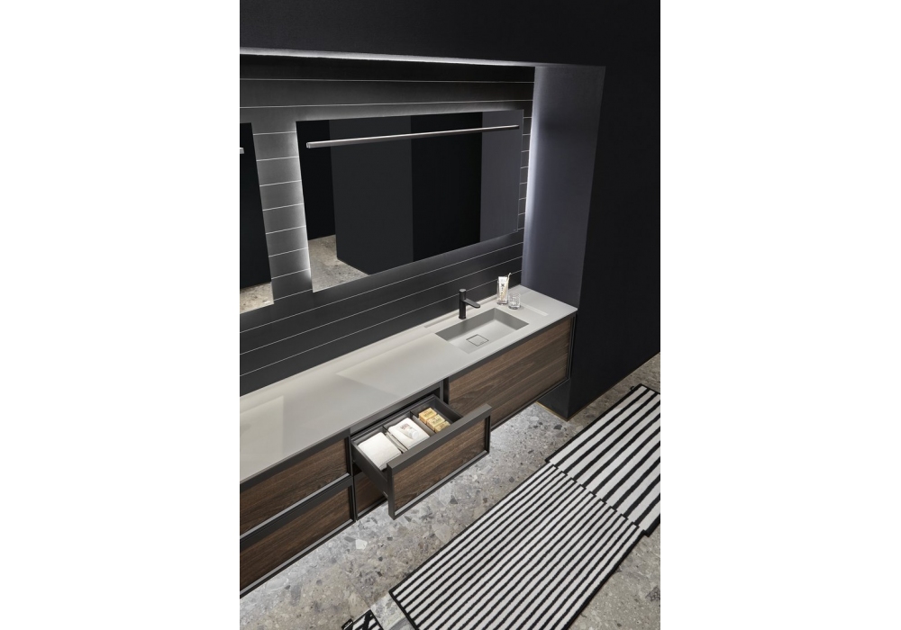 Bemade conçu par Carlo Colombo pour Antonio Lupi est un système alliant rigueur formelle et élégance contemporaine. Caractérisé par un cadre audacieux et distinctif, il exprime équilibre, proportions et style à travers des jeux de pleins et de vides, des combinaisons de couleurs et des reflets de lumière. Évolution de la collection Bespoke, il offre une flexibilité de composition maximale et de nouvelles options de personnalisation grâce à des finitions raffinées en matériaux et couleurs, de l'aluminium au verre et aux façades en bois. Une collection capable d'interagir avec la salle de bains et de se prolonger harmonieusement dans le salon.