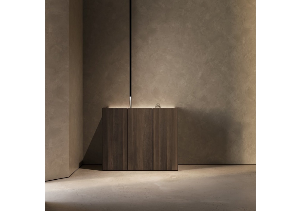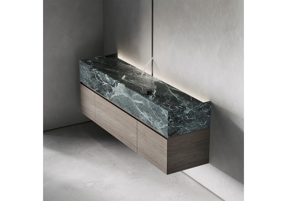 Lineadacqua conçu par Giorgio Rava pour Antonio Lupi est un système innovant qui redéfinit l'espace lavabo avec un design simple : une coupe verticale dans le mur d'où l'eau coule avec puissance et pureté. Un projet alliant technologie invisible et poésie formelle, où une pierre de marbre agit comme un discret bouton pour réguler le débit. Lineadacqua transforme les gestes du quotidien en une expérience sensorielle, nous ramenant aux origines, à la puissance primordiale de l'eau et à son essence régénératrice.